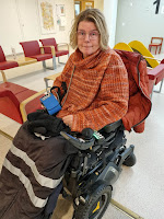 När Gert var sjuk så fick Rebecca komma hit för att först flytta på mig till fåtöljen, och sen därifrån till sängen. Ja det blir ju lite extra mycket som mina assistenter hjälper mig med, då han är sjuk eller borta.